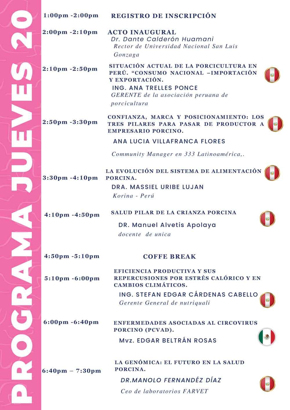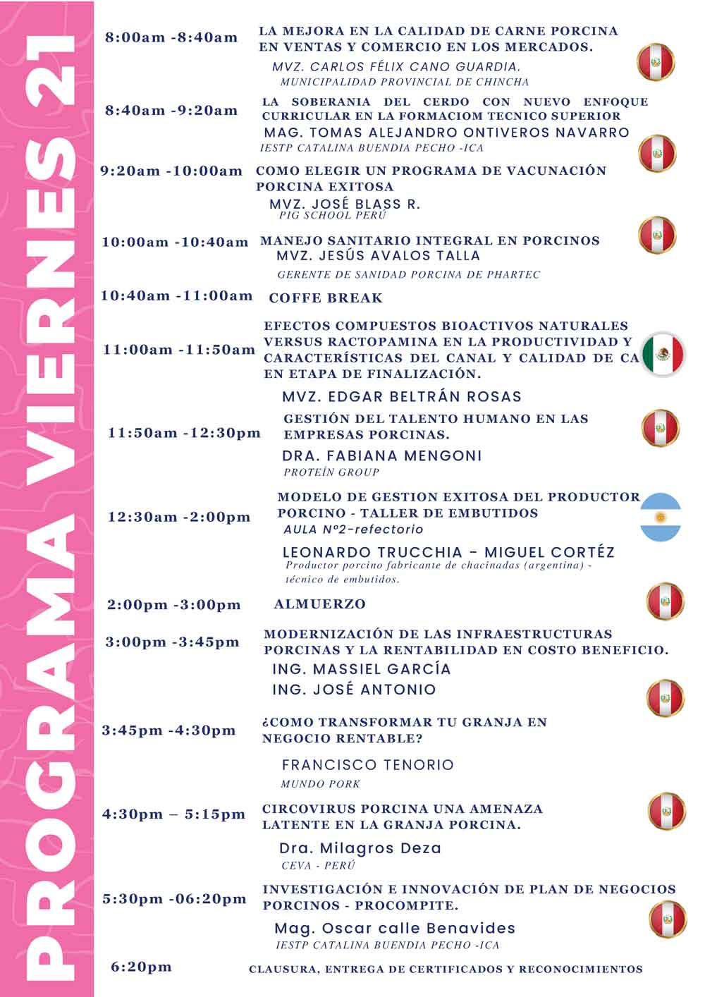 Durante dos días, productores, profesionales, investigadores, académicos y empresas proveedoras de insumos y servicios del sector compartirán conocimientos y experiencias orientadas a mejorar la eficiencia productiva, la sanidad animal y la sostenibilidad ambiental de las granjas porcinas del país. Además, el evento contará con ponencias magistrales, mesas de debate, exposición comercial y espacios de networking, fomentando la colaboración entre los distintos actores de la industria.